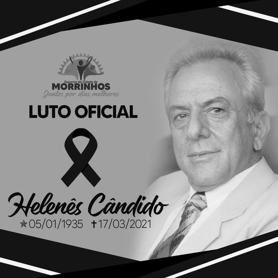 A Cidade dos Pomares se despede da maior liderança de todos os tempos: Dr. Helenês Cândido! Considerando o papel relevante do ex-governador e ex-prefeito como homem público, o gestor da Prefeitura de Morrinhos, Joaquim Guilherme Barbosa de Souza, decreta luto oficial pelo falecimento do advogado, professor, escritor, poeta, mobilizador e apoiador das causas sociais e classistas, bem como presta todas as honras em reconhecimento àquele que elevou Morrinhos no cenário goiano através dos mandatos de deputado estadual e sua brilhante atuação como presidente da Assembleia Legistativa. Helenês fez história e deixou um legado de honradez e distinção na política para Morrinhos e o Estado de Goiás. À esposa Lila Morais Cândido, aos filhos Helenês José e Paulo Roberto, aos irmãos e familiares, o abraço de toda a Administração Municipal e as orações para que Deus os ampare neste momento.