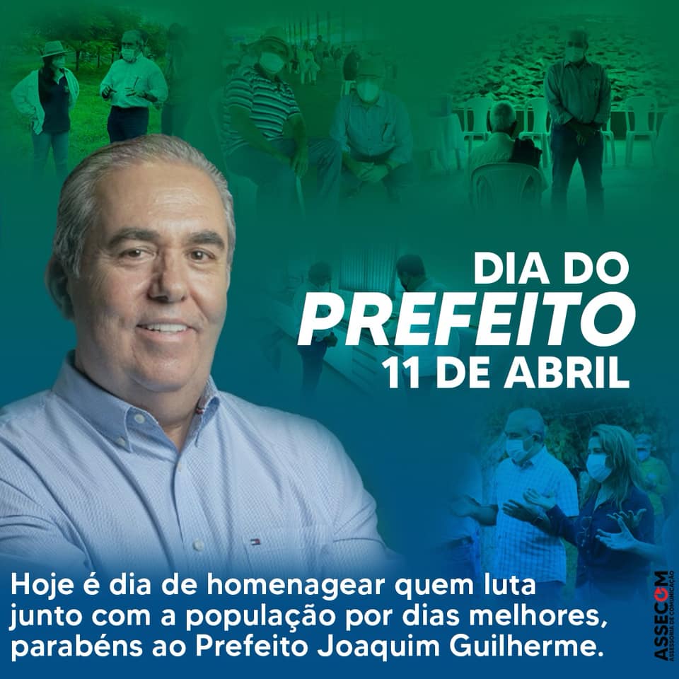 A Assessoria de Comunicação, em nome de todo funcionalismo público, parabeniza o gestor Joaquim Guilherme por ser um grande exemplo de quem tem a sabedoria de Deus para governar uma cidade com mais de 50 mil habitantes.