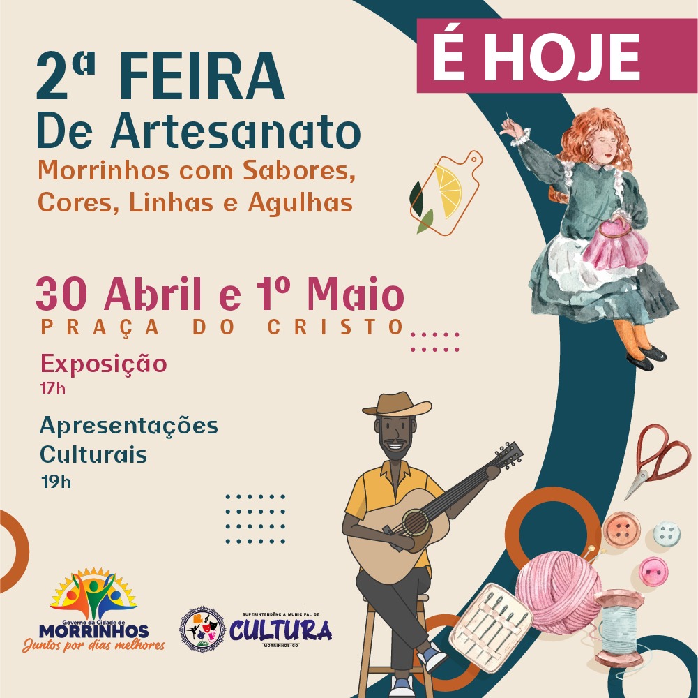 A Prefeitura de Morrinhos reforça para a comunidade morrinhense e região o convite para a participação na 2ª Feira de Artesanato com o tema: Morrinhos com Sabores, Cores, Agulhas e Linhas.