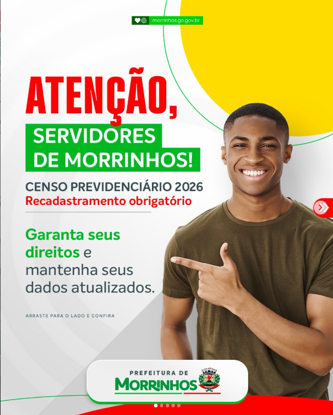 A Prefeitura de Morrinhos alerta: o prazo para realização do Censo Previdenciário 2026 se encerra no dia 30 de abril. Esta é a última…