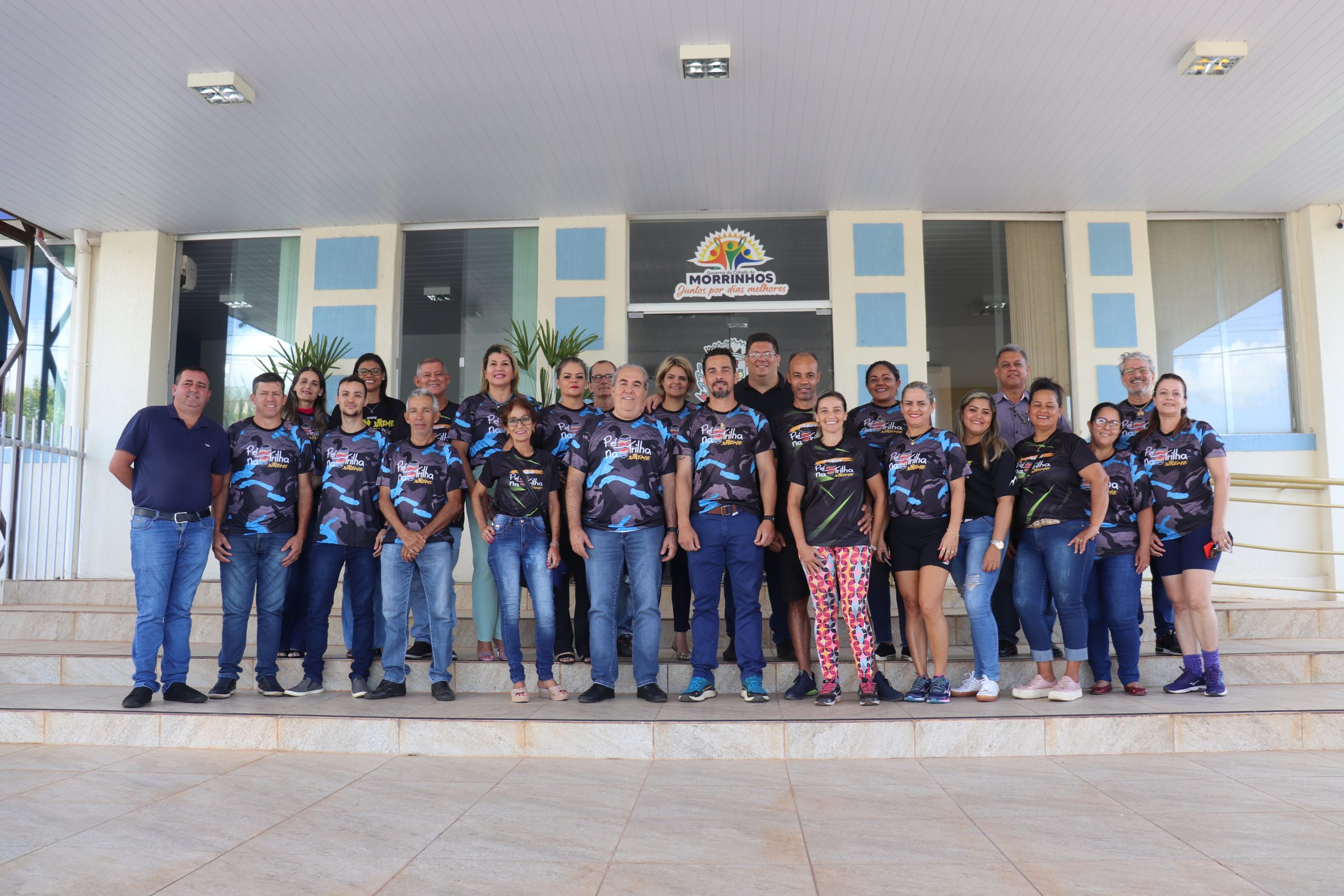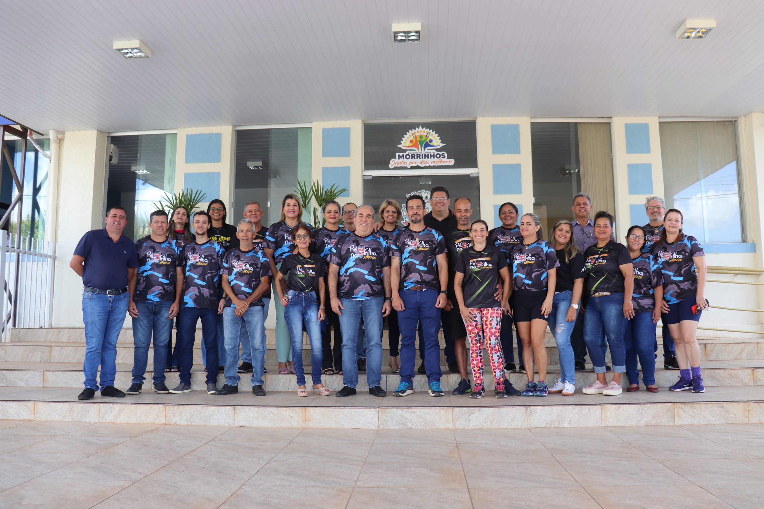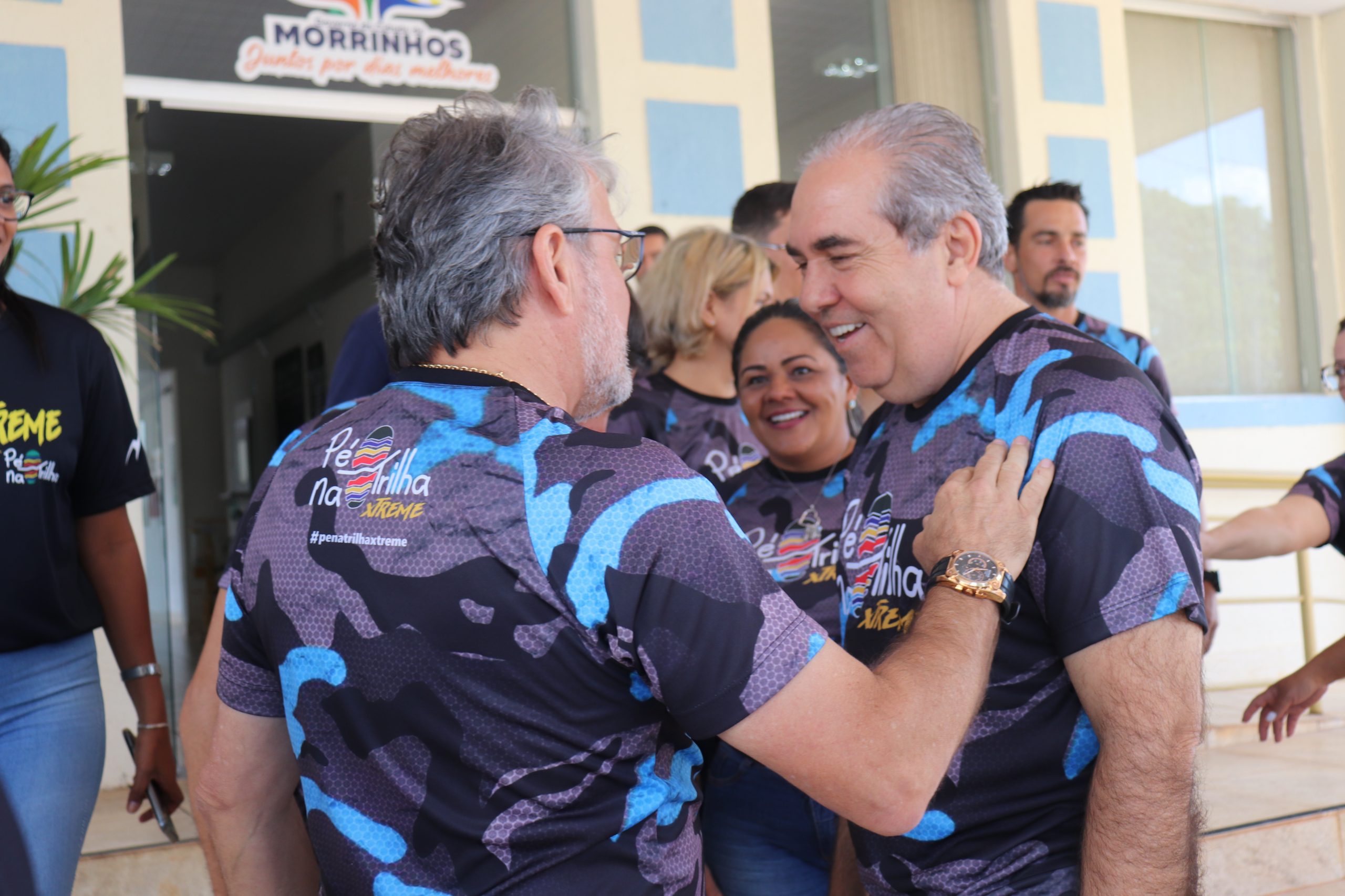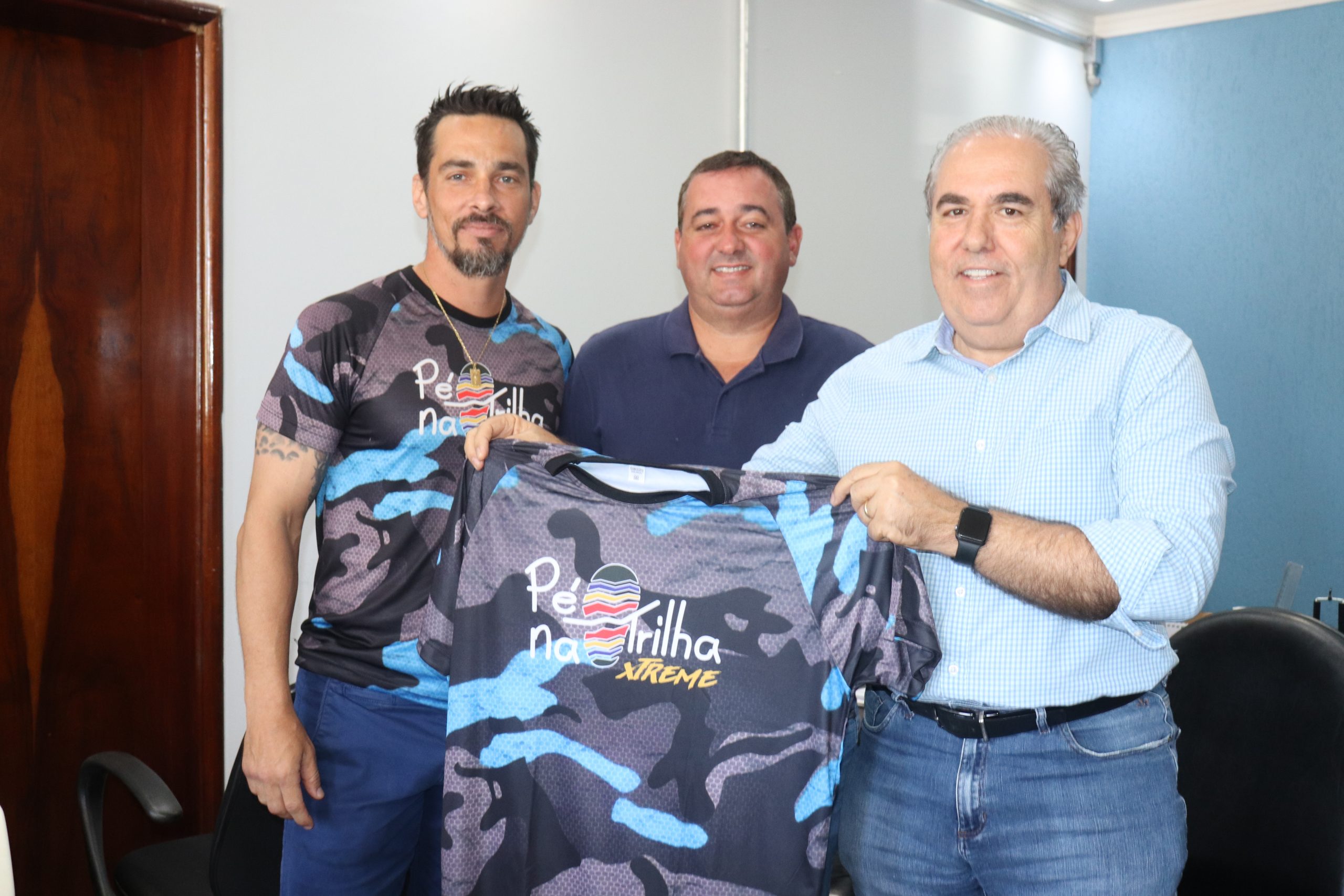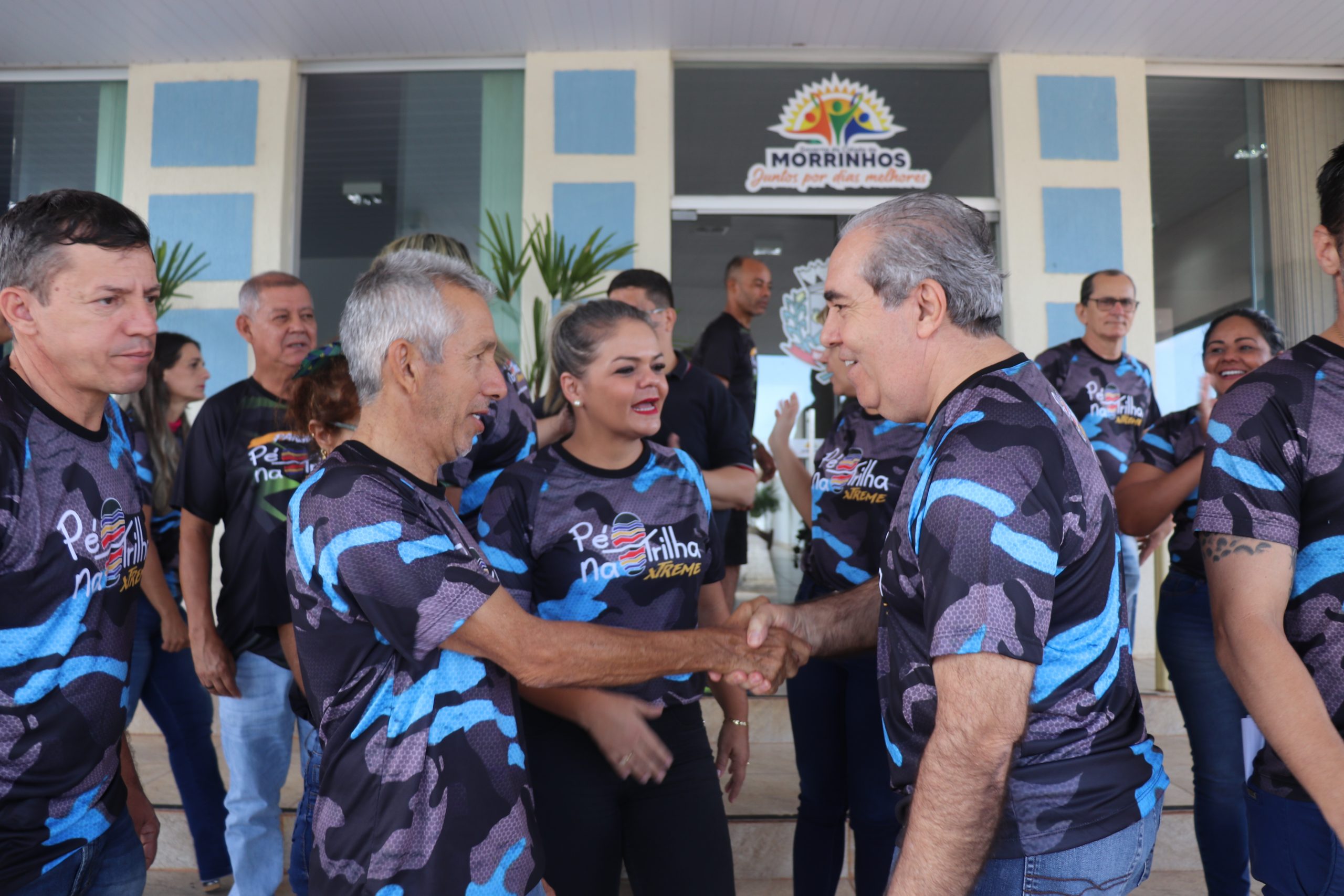 O prefeito Joaquim Guilherme recebeu, em seu gabinete, integrantes da diretoria e equipe Pé na Trilha. O grupo esteve reivindicando apoio ao esporte que é voltado para a corrida/caminhada de rua e em trilha, bem como o incentivo ao uso de ambientes naturais que são de responsabilidade do município de Morrinhos e outros assuntos de interesse dos atletas. Estiveram presentes, os superintentendes de Esporte e Meio Ambiente, Leandro Nato e Renan Ávila, além dos vereadores Atualber Alberto e Wesley Santos. O presidente Wéber de Paula fez questão de entregar camisetas ao gestor e a primeira-dama Eneida Figueiredo, além de reforçar o convite para a participação de ambos na programação do grupo de corrida e caminhada. “É uma honra receber os atletas e adeptos à modalidade esportiva que ganhou o coração da comunidade morrinhense. Me cocolo à disposição para colaborar para com o grupo e fazer com que o projeto tenha continuidade. Nós, enquanto Prefeitura, apoiaremos uma edição ou circuito da modalidade, assim como ofertamos aos demais esportes. A partir de hoje, os superintendentes estarão estudando o caso de vocês para que traga soluções e novas perspectivas para todos”, disse o prefeito Joaquim Guilherme, agradecendo a presença de todos.
