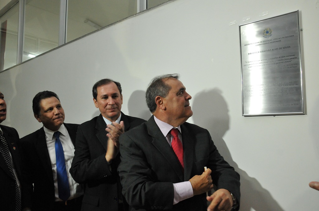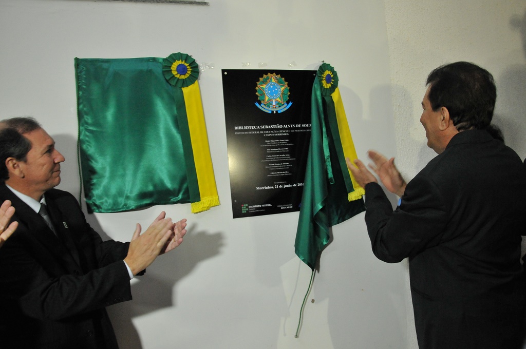 Ao final da cerimônia todos foram convidados para o descerramento da placa de inauguração da Biblioteca do IF que leva o nome Sr. Sebastião Alves de Souza (in memoriam).