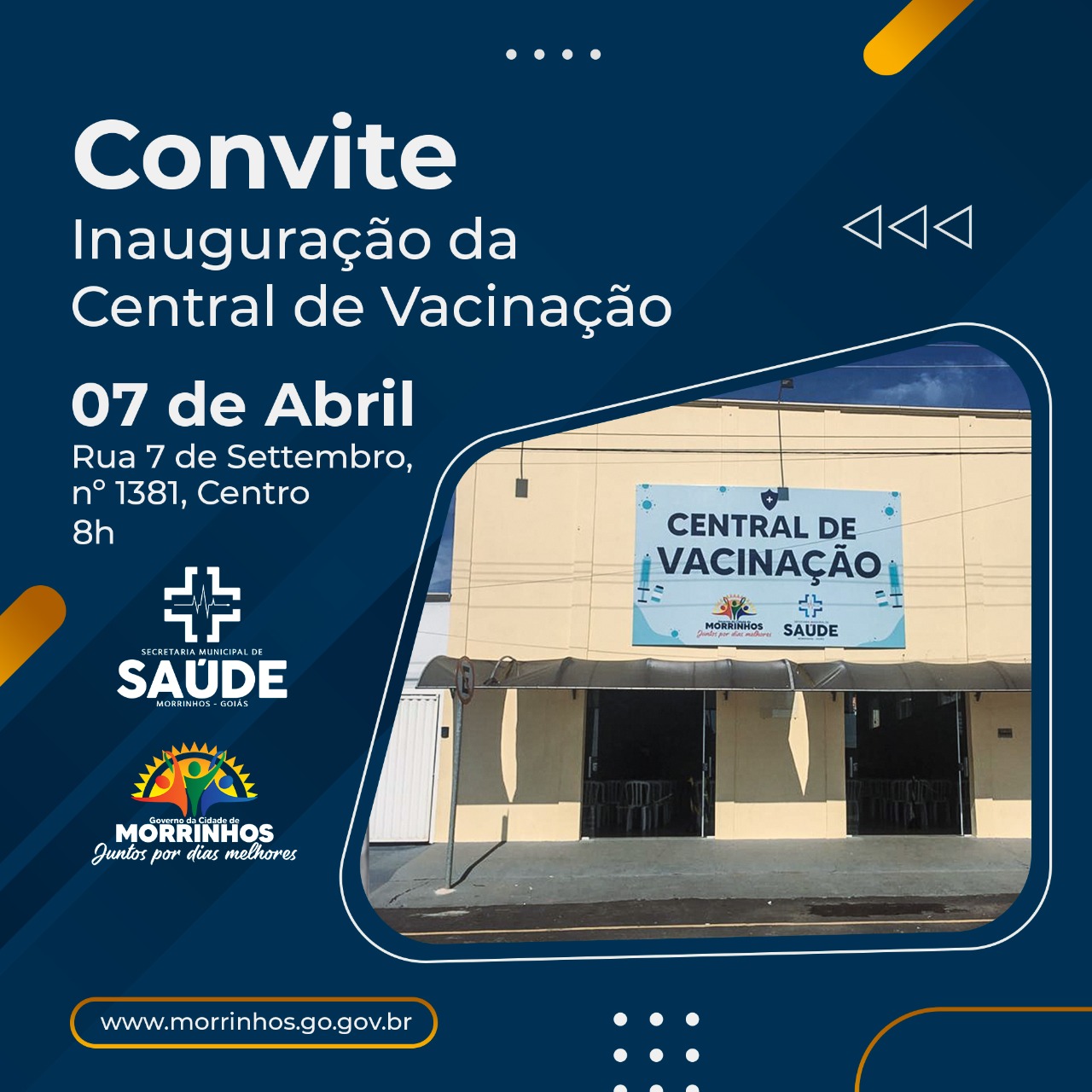 Prefeitura de Morrinhos convida para inauguração da Central de Vacinação da Covid-19