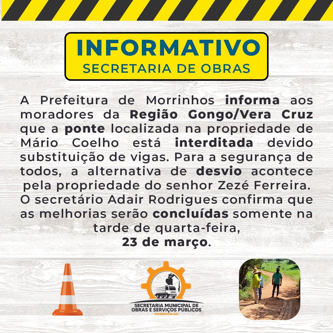 Prefeitura de Morrinhos faz alerta aos moradores da Região Gongo/Vera Cruz