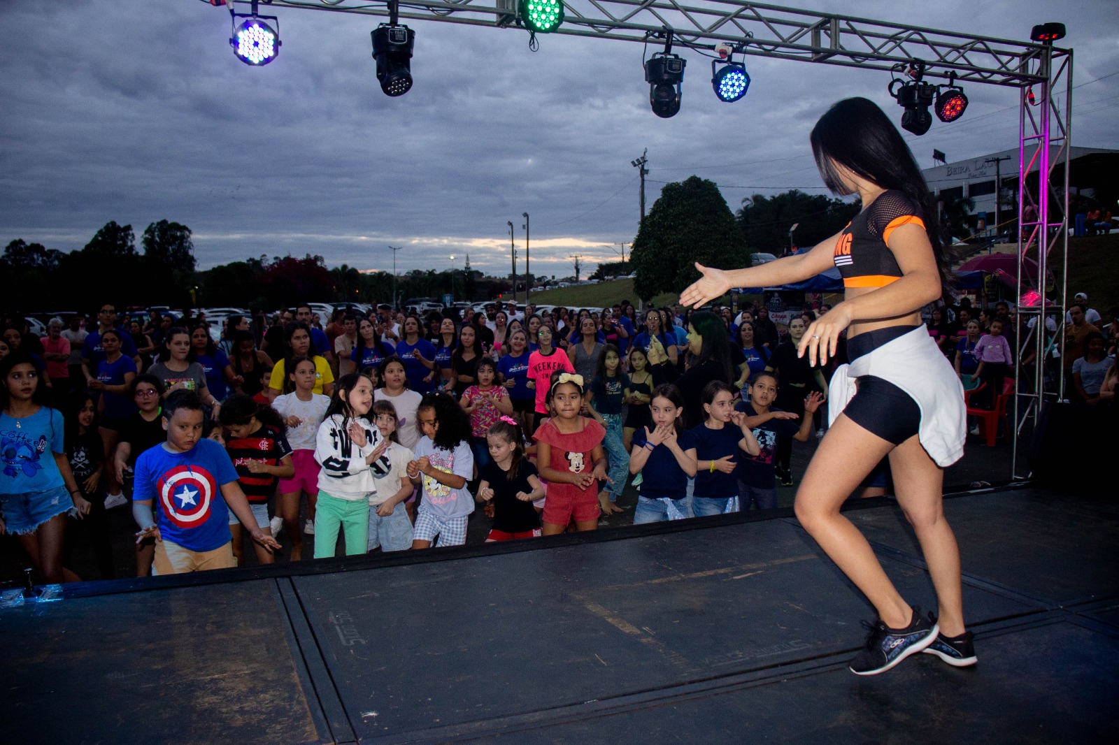 Quem comandou o aulão de ritmos foi o instrutor e professor de dança Jhonatan Borges, que também ajudou a organizar o evento. Ao lado dele, a influenciadora e dançarina Ana Carolinne Ribeiro, que soma mais de 1 milhão de seguidores nas redes sociais, colocou o público para dançar com muita animação: