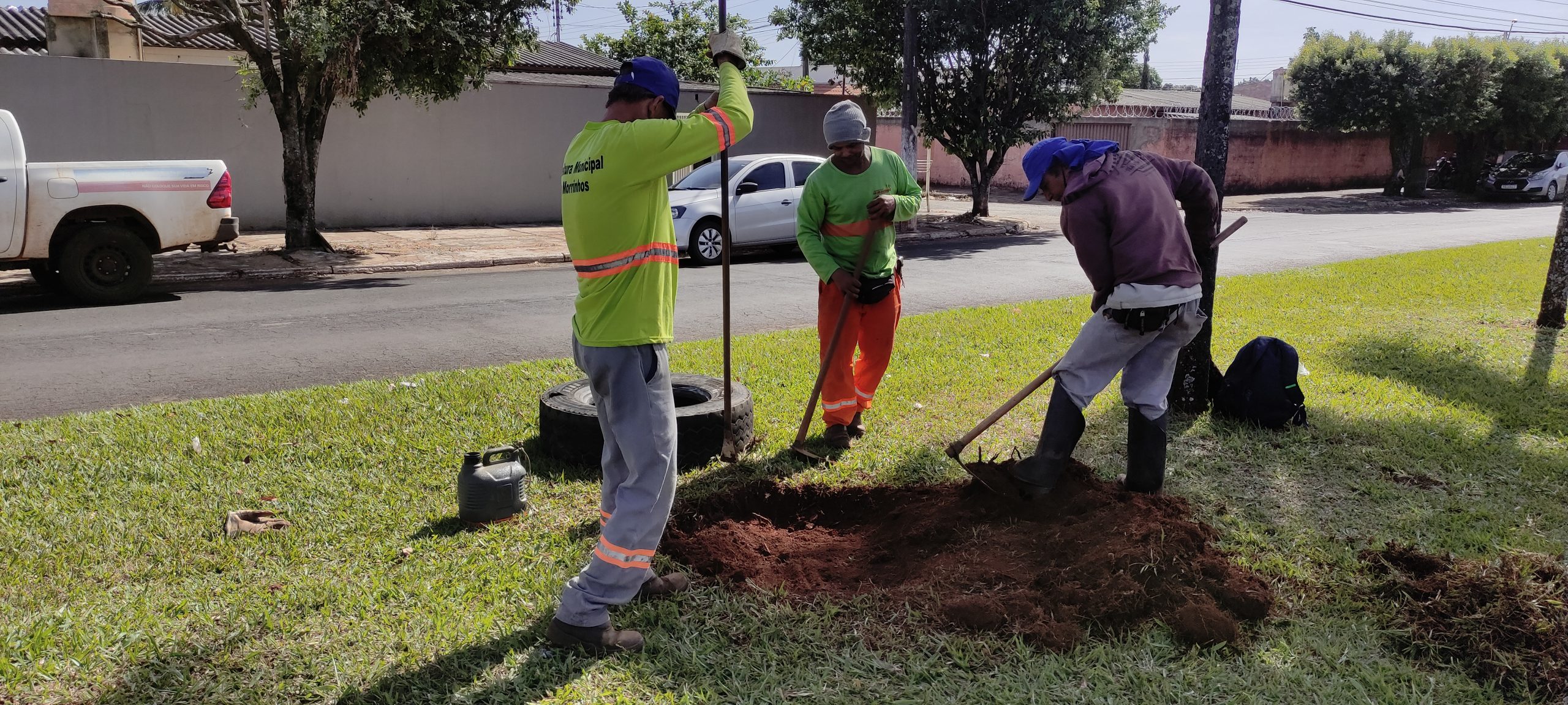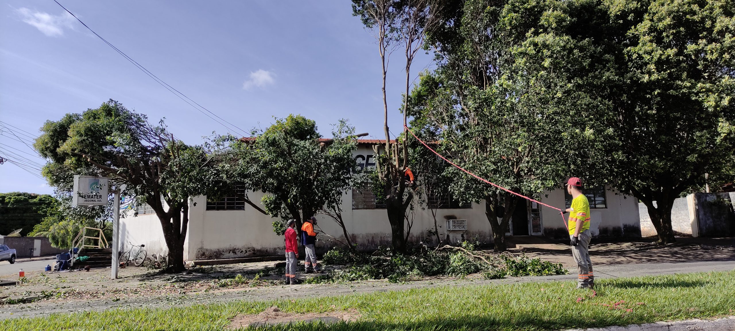 A Secretaria de Obras informa que hoje está realizando poda de árvores no passeio do prédio onde está localizada a sede Regional da Emater e Agrodefesa, na Avenida 100 próximo a Sinap; abertura de espaço no gramado da ilha da Avenida Janhyme Afonso Vilela, na Vila Santos Dumont, para implantação de canteiro de flores; poda de grama nas margens da Avenida Coronel Fernando Barbosa, no Setor Santa Terezinha e nas mediações do prédio da SMT; varrição de ruas, com retirada de lixo resultantes da coleta programada de entulhos, realizada recentemente nos setores Vila Nova I e II; implantação de redutor de velocidade (quebra-molas) na rua vinte e seis no Setor São Francisco de Assis.