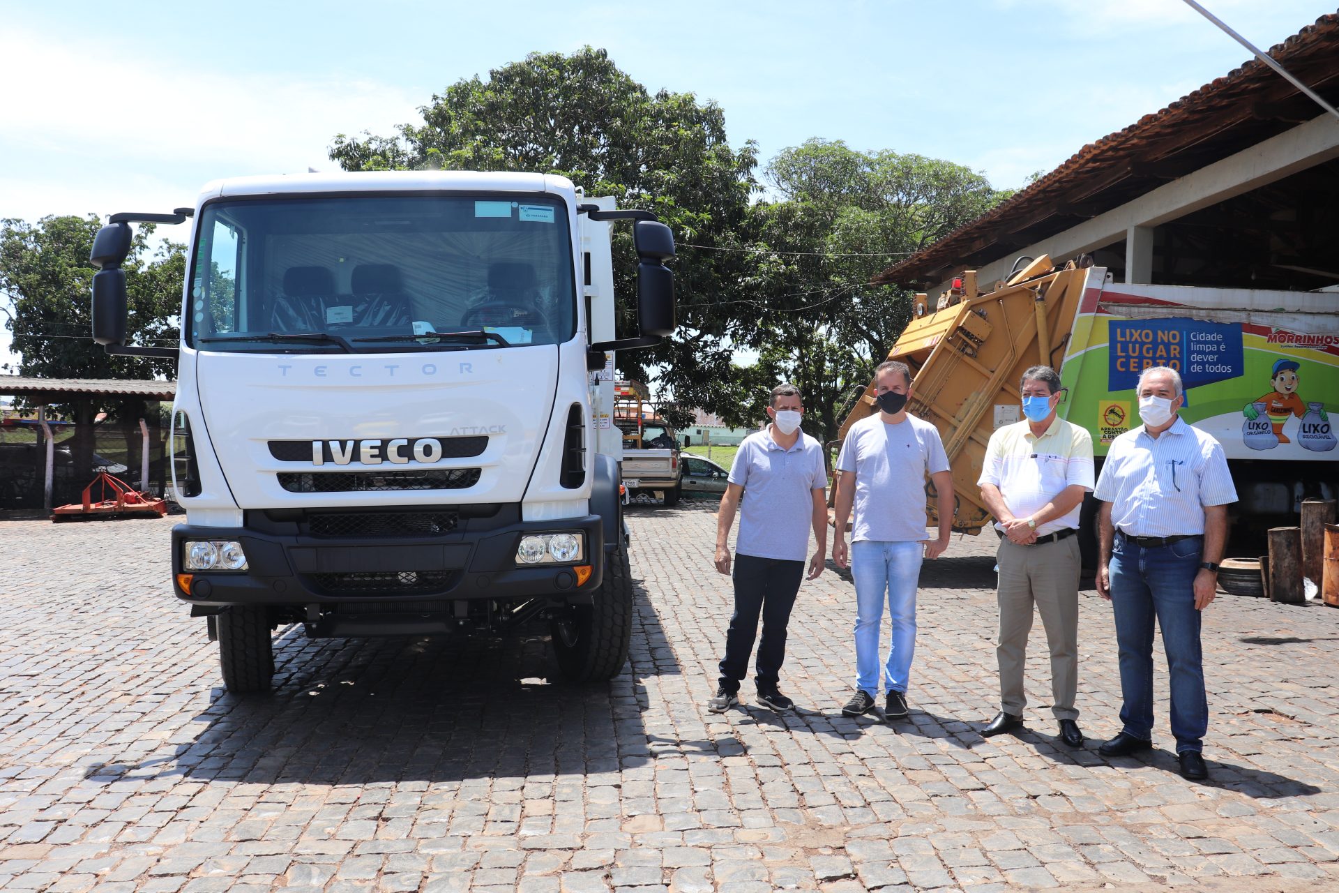 Para reforçar o trabalho de limpeza pública, a Prefeitura de Morrinhos recebeu na manhã desta terça-feira, 26 de janeiro, um caminhão compactador de coleta de lixo, com capacidade para 6 metros cúbicos de material comprimido. O veículo foi adquirido através de recursos próprios da Administração Municipal e está à disposição da Secretaria Municipal de Obras e Serviços. Trata-se de um equipamento da marca Iveco, nas cores branco e amarelo, que nos próximos dias será plotado para atender aos diversos setores. O gestor Joaquim Guilherme, o vice-prefeito Rafael Gonçalves e o secretário Adair Rodrigues já conferiram o bem público que veio para somar na frota municipal.