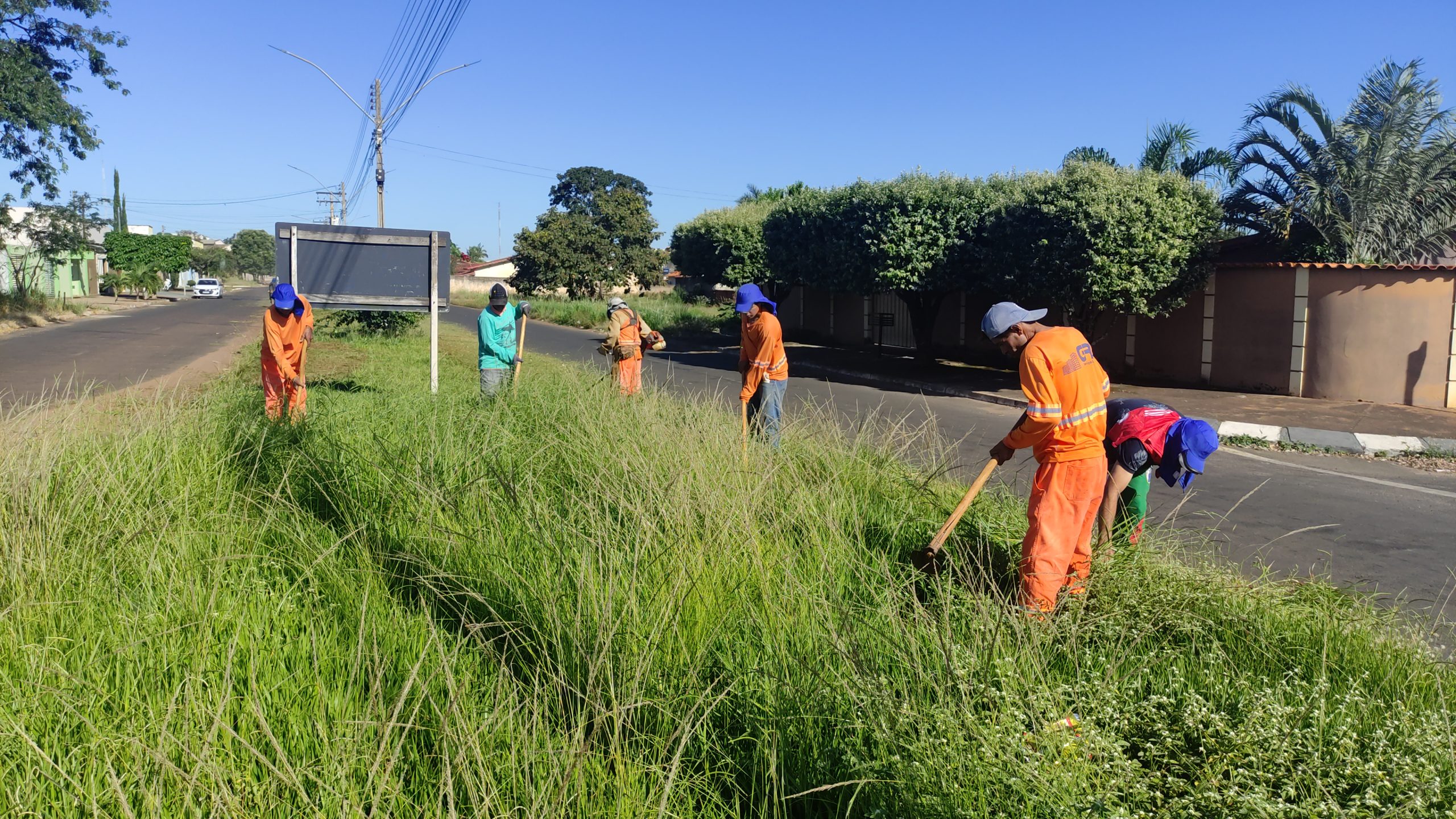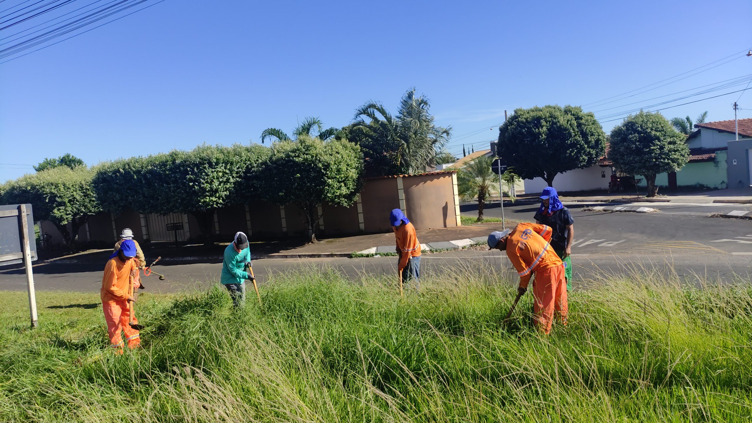 A Equipe comandada pelo Gerente Fausto de Oliveira, divida em três frentes, trabalha hoje na Avenida F, do Setor Santa Fé até o Monte Verde, nas Avenida 101 B, e 100 e na Praça Monte Castelo, “Praça do Mercado”, fazendo poda de grama, capina, roçagem, limpeza e varrição.